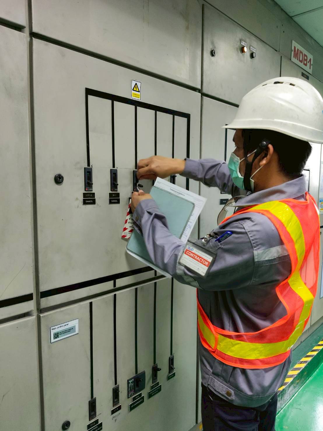 เริ่มต้นด้วยความปลอดภัยสูงสุด: เราปฏิบัติตามขั้นตอน Lockout/Tagout (LOTO) อย่างเคร่งครัด โดยทำการแขวนป้ายและล็อคเบรกเกอร์หลักที่ตู้ MDB-1 ก่อนเริ่มปฏิบัติงาน