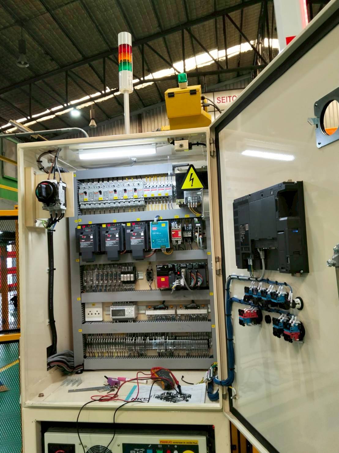 เชี่ยวชาญตู้ควบคุมหุ่นยนต์: เรามีความชำนาญในการอ่านแบบไฟฟ้า (Wiring Diagram) และประกอบตู้คอนโทรลสำหรับหุ่นยนต์ ซึ่งรวมถึงการติดตั้งและเดินสาย VFDs (Variable Frequency Drives), เบรกเกอร์, รีเลย์, และ Power Supply อย่างเป็นระเบียบและถูกต้อง
