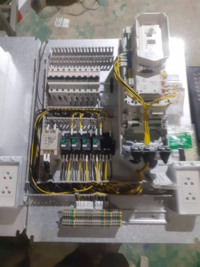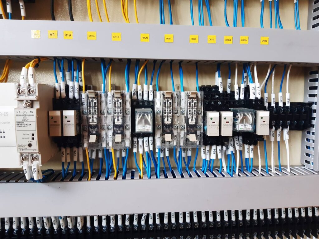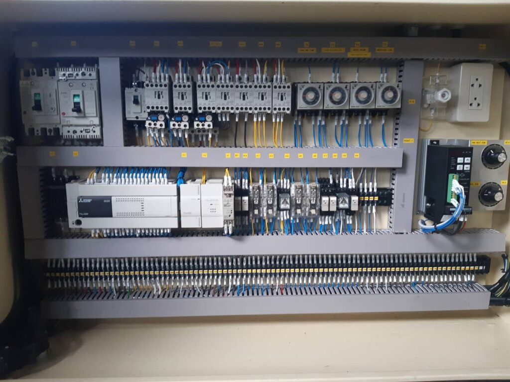 Control Panel: ประกอบตู้คอนโทรลโดยจัดวาง Power Supply, Relays, และ PLC อย่างเป็นหมวดหมู่ พร้อมติดป้ายกำกับชัดเจน (Labeling)